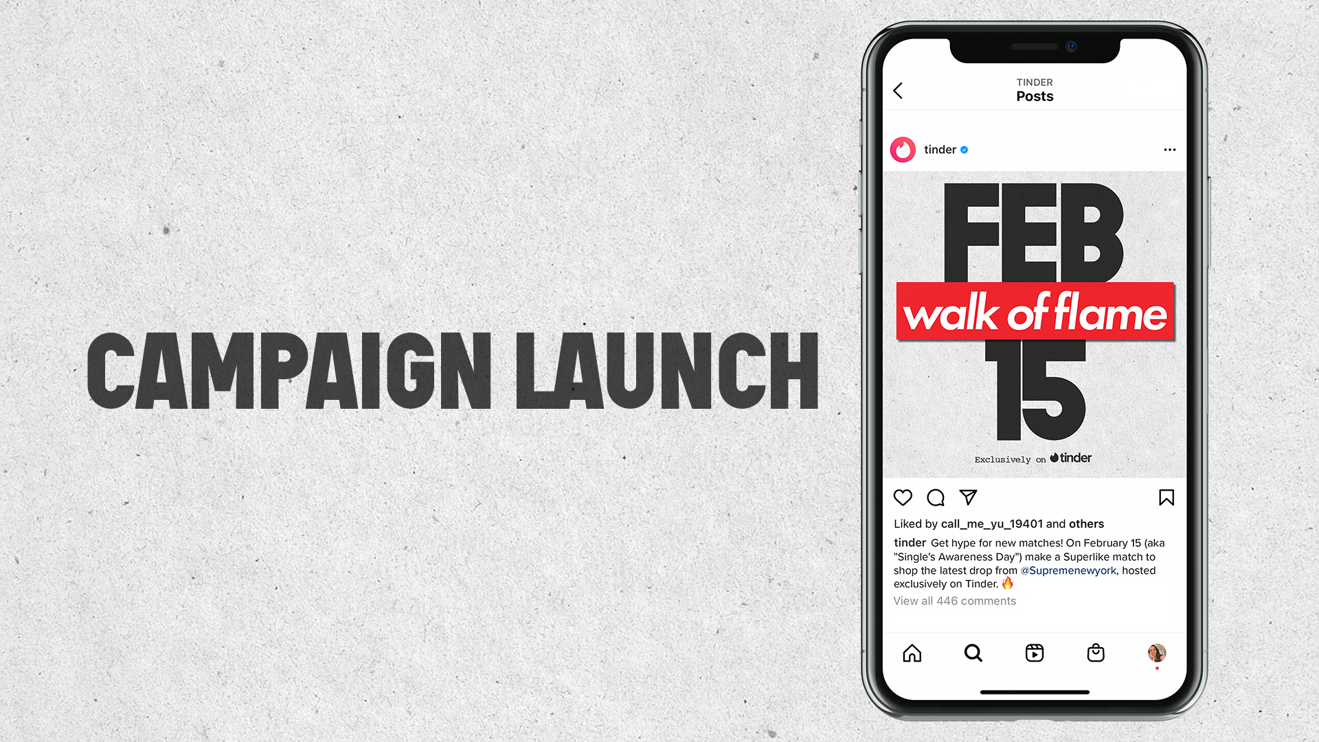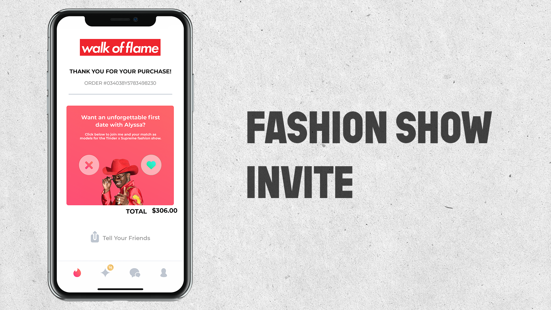 To build hype, the first twenty people to make Superlike matches and purchase an item from the collection will be invited, along with their match, to model the collection in an exclusive fashion show, which will be streamed live on Tinder’s social pages.